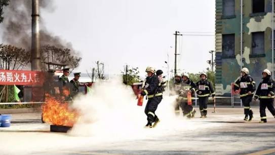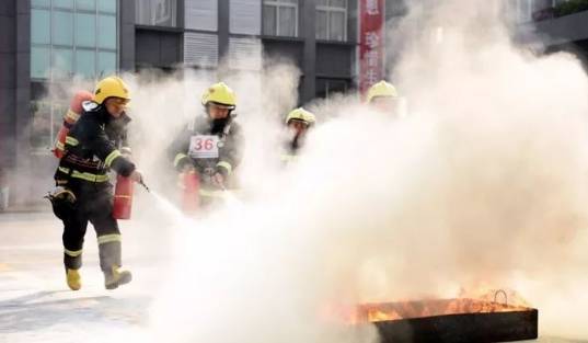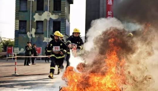 灭火救人综合操要求每个代表队6名队员参赛,参赛队员提前穿戴好装备,听到“开始”的口令,携带灭火器从起点线出发,将火扑灭;火扑灭后将答题区域的题目答完,并将假人抬回起点线喊“好”。